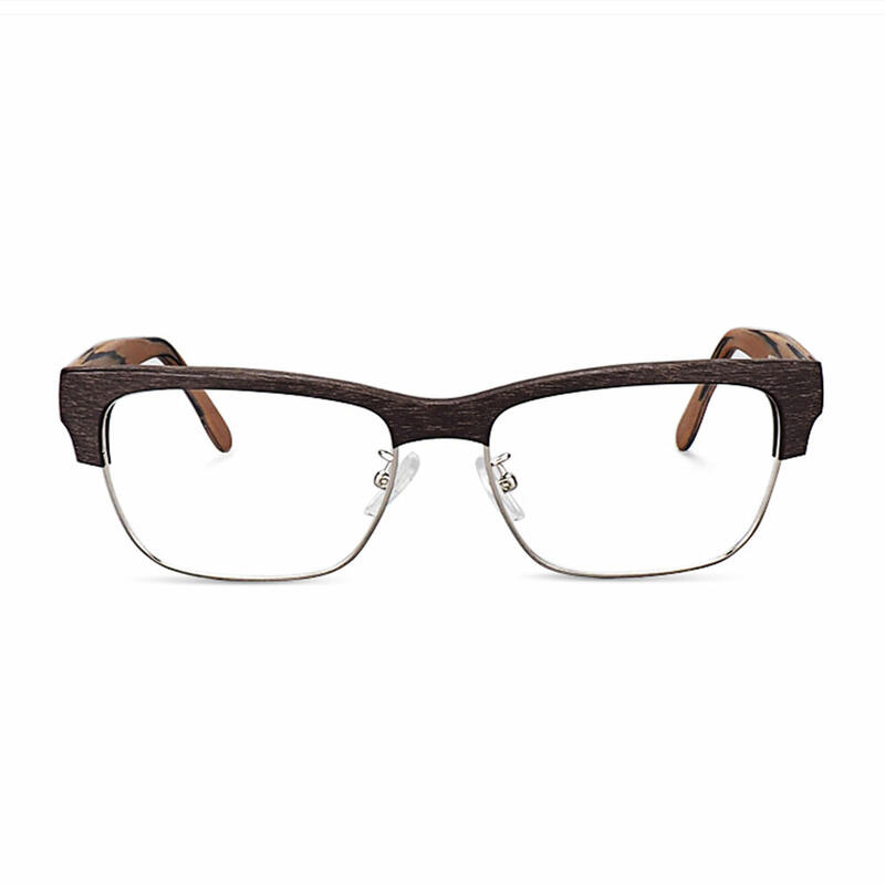 These rectangle glasses have a subtle yet striking faux woodgrain finish. This ultra-lightweight, flexible frame with hidden spring hinges is part of our everyday wear. Constructed with acetate, they are designed for maximum comfort.