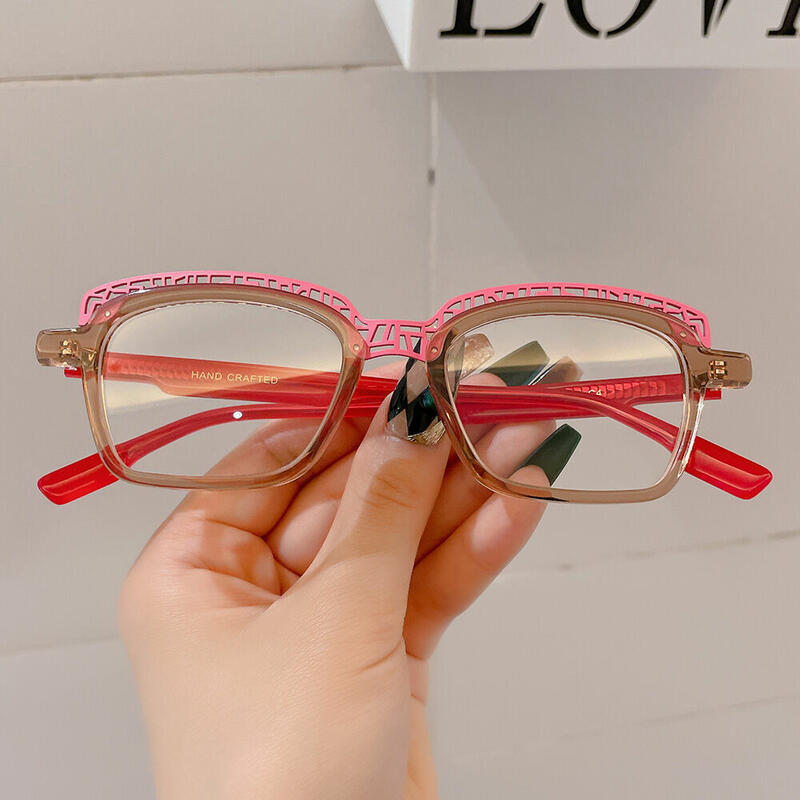 The square cutout design of these glasses adds a touch of modern edge to your look, creating a unique and eye-catching aesthetic that is sure to turn heads. The intricate cutout patterns lend a sense of artistry to the frames, making these glasses a standout choice for individuals who appreciate avant-garde design and creative expression.