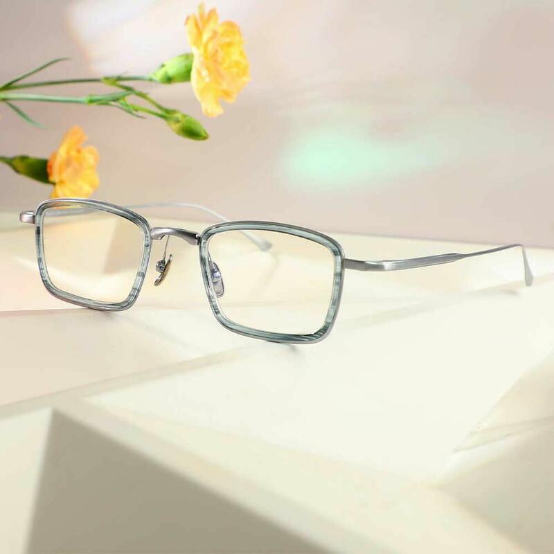 Crafted with titanium temples for strength and a TR90 front for flexibility, this frame features crisp rectangular lines. Lightweight and resilient, it blends contemporary design with all-day comfort.