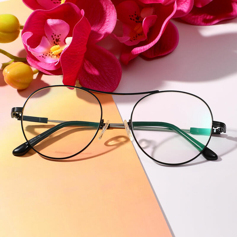 These round frame aviator-style glasses combine the classic appeal of aviator glasses with the sophistication of round frames, creating a unique and stylish eyewear option. The adjustable nose pads allow wearers to customize the fit for optimal comfort and stability. The versatile design makes these glasses suitable for various occasions, from casual outings to more formal settings.