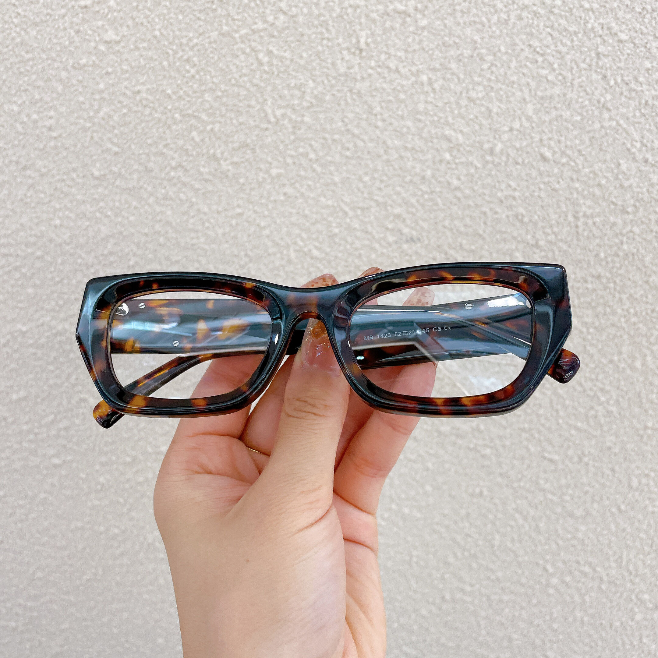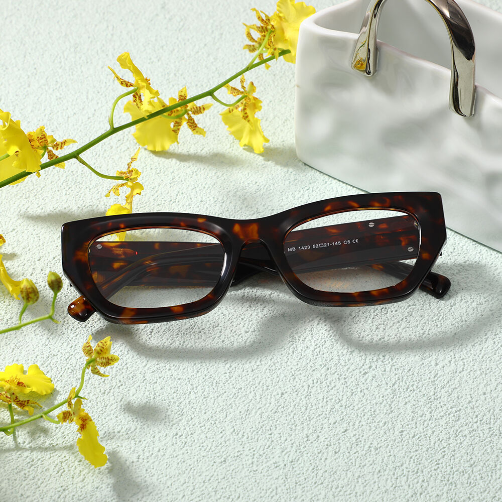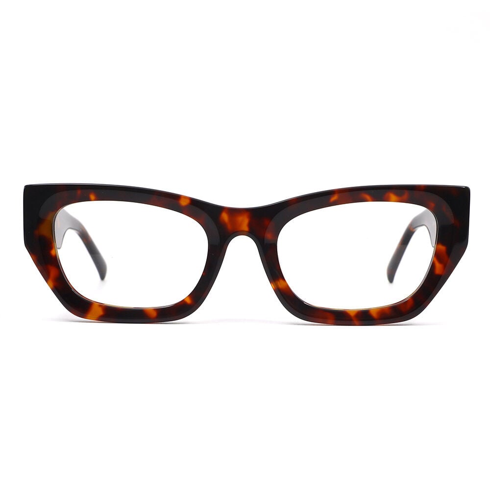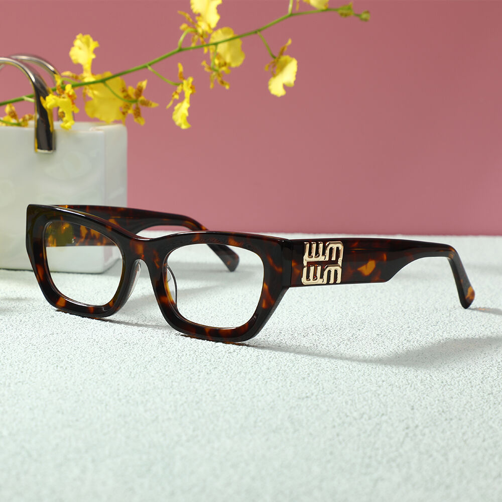 The cat-eye glasses with acetate temple arms and metal embellishments offer a stylish and sophisticated eyewear option that seamlessly combines classic charm with modern flair. These glasses feature a cat-eye frame made from acetate material, known for its durability, lightweight feel, and polished finish. The temple arms are elegantly adorned with metal decorations, adding a touch of refinement and luxury to the overall design.The cat-eye shape of the frame adds a touch of retro-inspired charm, while the metal decorations on the temple arms bring a modern twist, making these glasses a versatile accessory suitable for a variety of occasions. The acetate temple arms provide a comfortable fit, while the metal embellishments elevate the overall aesthetic, adding a touch of glamour and sophistication to the glasses.