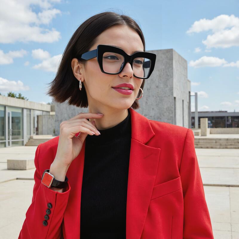 Introducing our stylish cat eye glasses with large frames designed to enhance your facial features. These fashion-forward glasses combine the iconic cat eye shape with oversized frames, creating a bold and statement-making accessory that is both trendy and flattering.Crafted with quality materials and attention to detail, our large frame face-enhancing cat eye glasses are not just a fashion accessory but also a functional and comfortable eyewear option. Experience the perfect combination of style and comfort with these on-trend glasses that are designed to make you look and feel fabulous wherever you go.