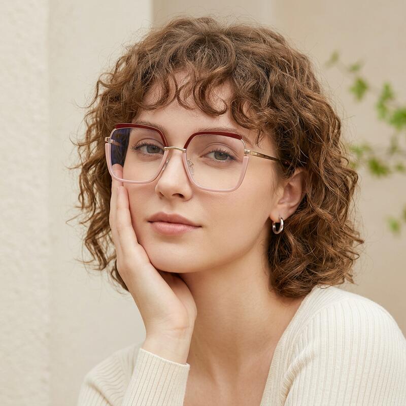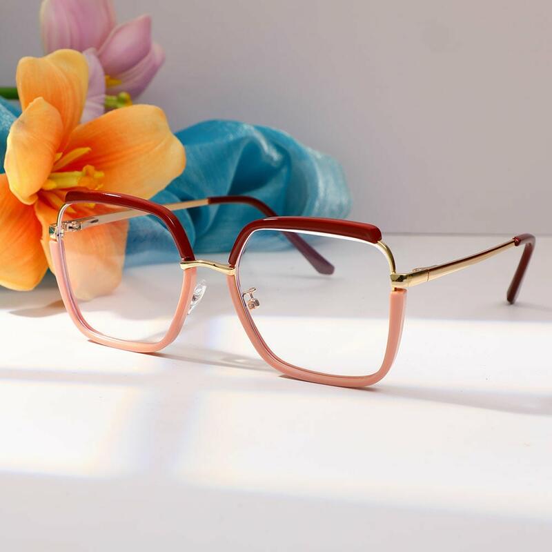 These fashionable geometric glasses embody prismatic perfection. The frames feature multi-faceted angles that create a dynamic and captivating look. Crafted from innovative materials, they offer both style and lightweight comfort. The intricate design reflects light in unique ways, adding depth and dimension to your appearance. The geometric shape complements various face shapes, ensuring a striking look for any wearer. Ideal for fashion enthusiasts who appreciate avant-garde design and optical artistry.