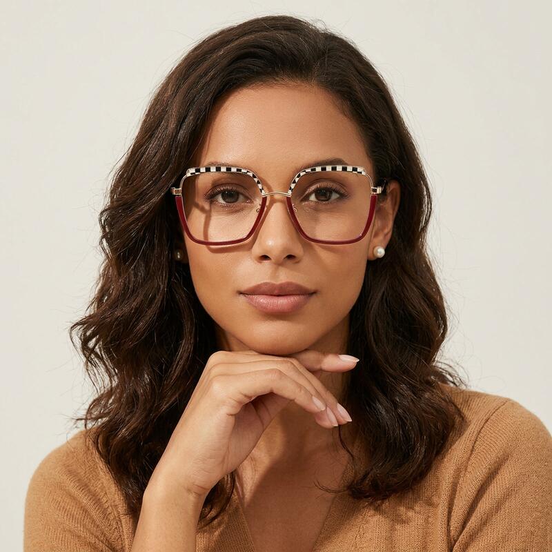 These fashionable geometric glasses embody prismatic perfection. The frames feature multi-faceted angles that create a dynamic and captivating look. Crafted from innovative materials, they offer both style and lightweight comfort. The intricate design reflects light in unique ways, adding depth and dimension to your appearance. The geometric shape complements various face shapes, ensuring a striking look for any wearer. Ideal for fashion enthusiasts who appreciate avant-garde design and optical artistry.