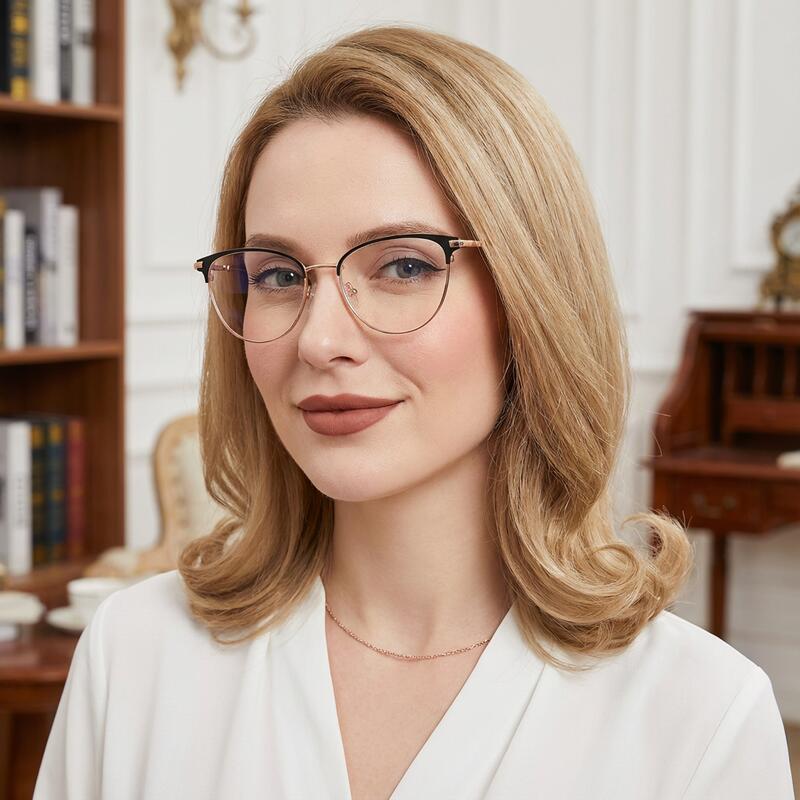 When it comes to style, these half-rimmed frames are full of it. Cat-Eye Eyeglasses have stylish cat-eye lenses with a modern metal browline. The accentuated corners will have all eyes on you, especially with the lustrous metallic brow.
