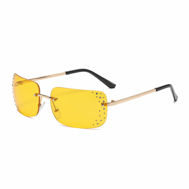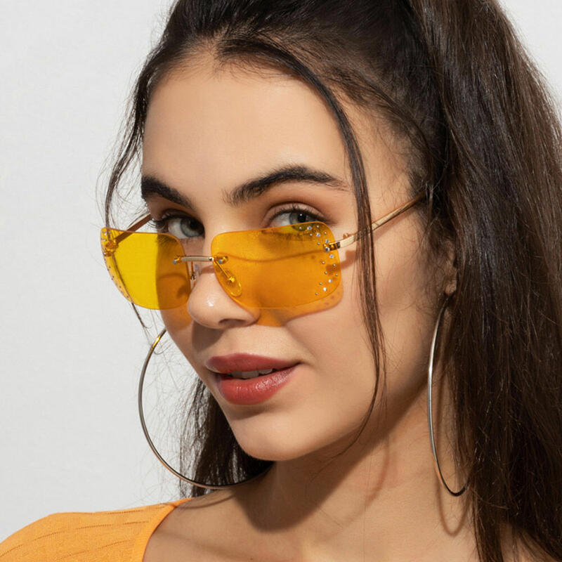 Trendy rimless design with diamond on the lenses. The unique diamond-encrusted design is stunning and Show Your Unique And High-end Taste. In the ins the most popular for sunglasses decoration.