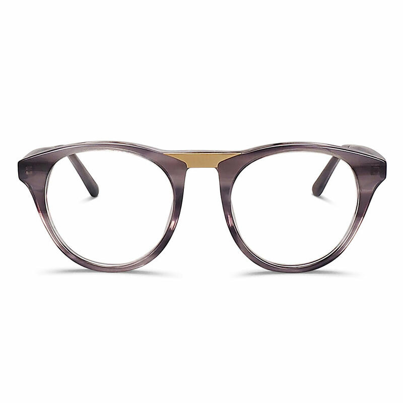 These smart round glasses offer the right balance of business and casual. This glossy frame has cross stripes on rims. Tinted tortoise is among these cross stripes, which is simple and stylish. The round frame suits every face shape.