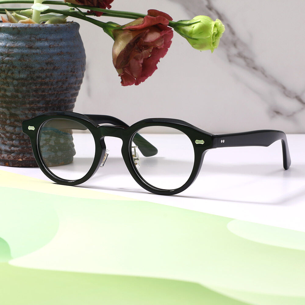Introducing our Vintage Round Frame Glasses featuring a unique acetate material with rivet design, adding a touch of sophistication and style to your eyewear collection.These glasses combine the classic round frame silhouette with the durability and luxurious feel of acetate material, ensuring both quality and comfort. The rivet design adds a distinctive flair, creating a statement piece that stands out from the crowd.