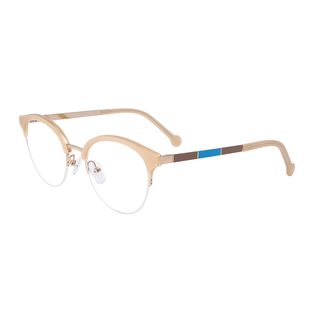Designed to effortlessly showcase your unique charm, Naomi features a delightful combination of round frames and soft, vibrant browlines. the round shape adds a touch of playfulness, while the colorful browlines create a harmonious balance that effortlessly enhances your personal style.