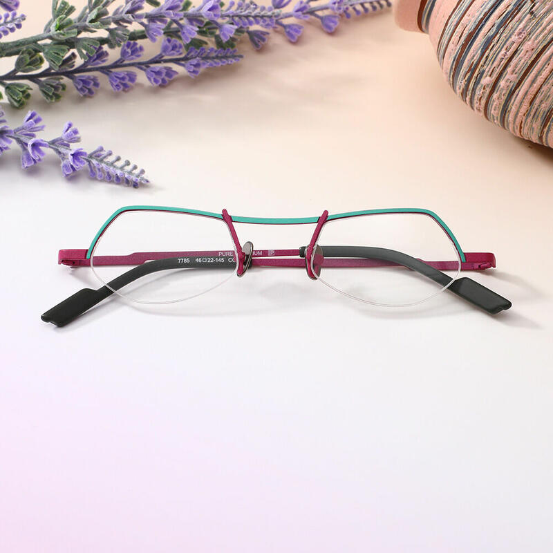 Introducing our Polygonal Semi-Rimless Ultra-Light Fashion Glasses, a stylish and lightweight eyewear option that features a unique polygonal shape with a semi-rimless design. These glasses are not only fashionable but also incredibly light, offering a comfortable and trendy choice for everyday wear.Elevate your eyewear collection with our Polygonal Semi-Rimless Ultra-Light Fashion Glasses. Embrace your unique sense of style with these fashionable and lightweight glasses that offer both a modern look and a comfortable feel. Make a statement with your eyewear and showcase your individuality with these eye-catching and featherlight frames.