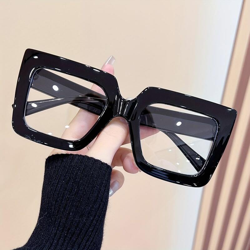 Introducing our Square Oversized Frame Minimalist Glasses with Metal Accents, a sleek and contemporary eyewear option designed to make a statement with its large frames and stylish metal embellishments. The oversized frames of these glasses create a fashion-forward statement, offering a trendy and chic aesthetic that is sure to turn heads and elevate your style.The metal embellishments on these glasses add a touch of refinement and luxury, enhancing their overall aesthetic and giving them a unique and stylish flair.