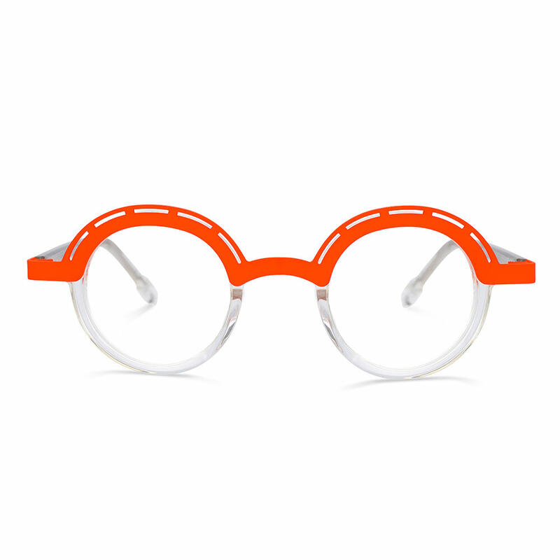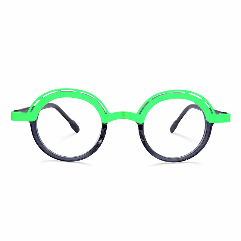 Ramos round full-frame glasses feature a captivating color-block design that effortlessly combines vintage charm with contemporary trends. Whether you're strolling through the city streets or attending a stylish party, these glasses are the perfect accessory to complete your effortlessly chic look.