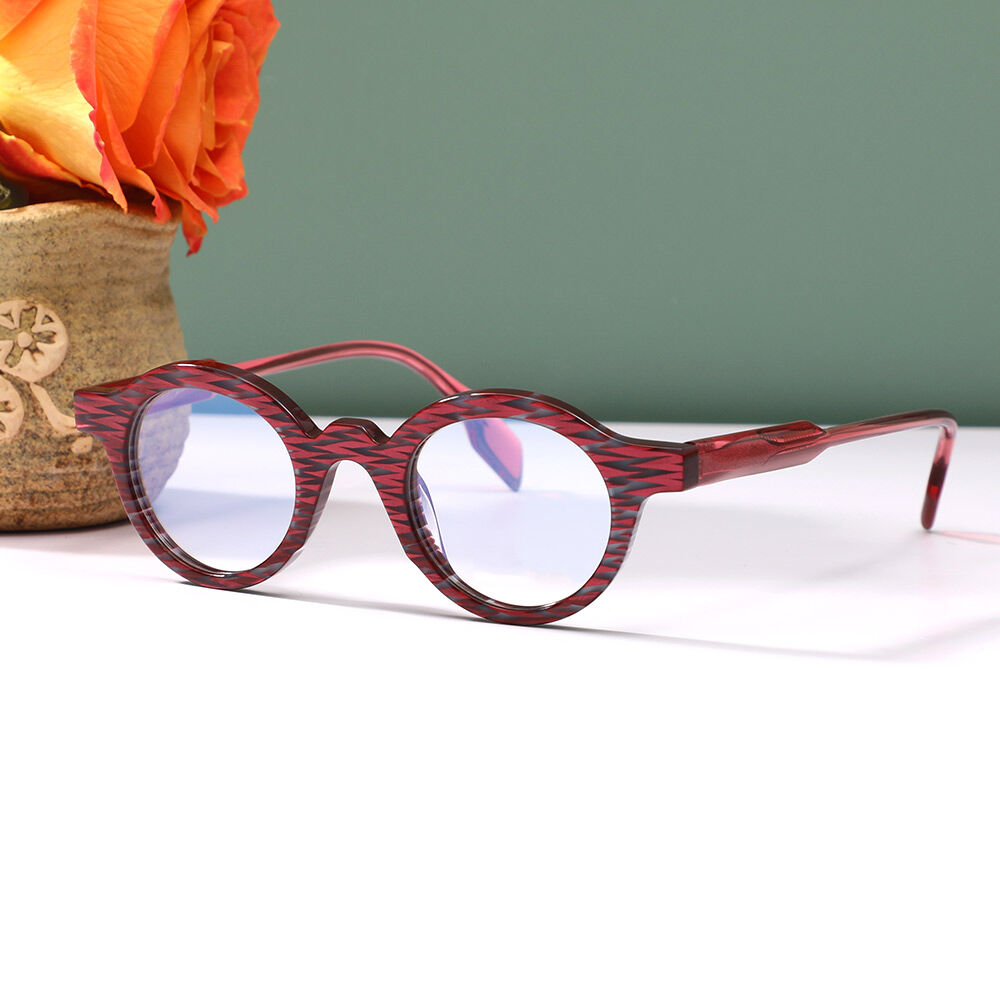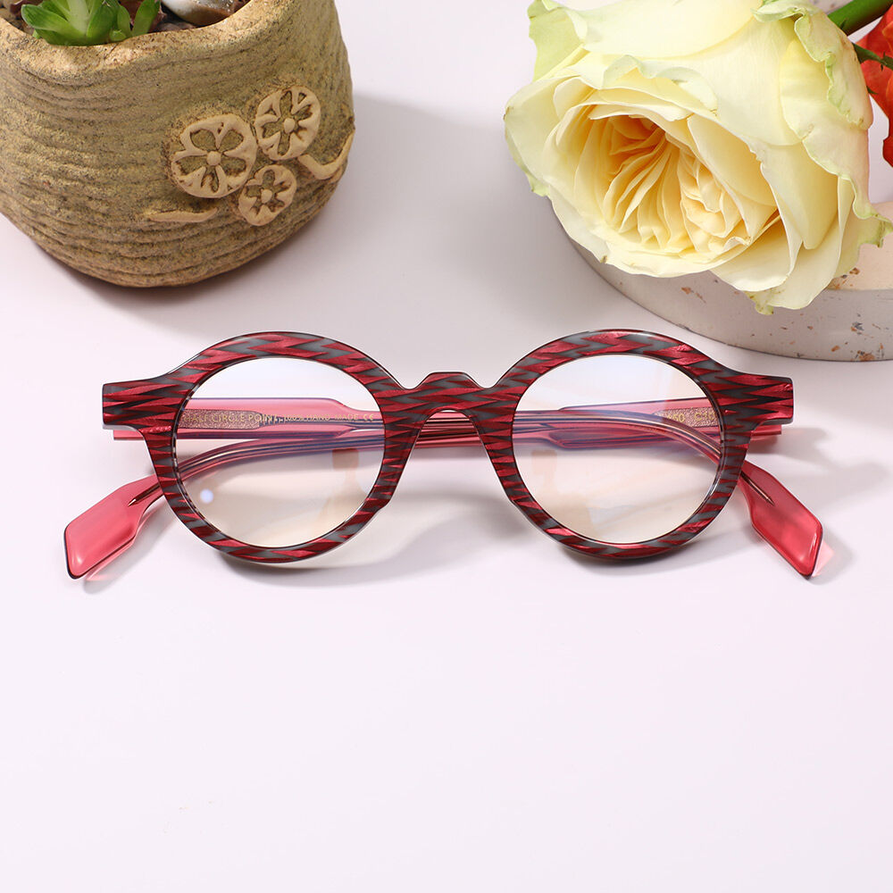 Introducing our Acetate Material Printed Round Frame Glasses, a stylish and eye-catching eyewear option that combines the durability of acetate material with unique printed designs. These glasses feature a classic round frame shape adorned with intricate and vibrant prints, adding a touch of flair and personality to your look.Embrace your individuality with our Acetate Material Printed Round Frame Glasses, a chic and expressive accessory that not only enhances your outfit but also reflects your personal style. Stand out from the crowd with these stylish and printed glasses that offer both comfort and a touch of artistic flair.