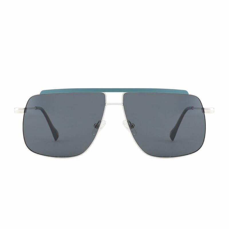The redesigned aviator shape into an unexpected new form, with innovative geometrical lenses in grey. The conspicuous top bar features bright colors including black, orange, light blue, and dark blue. If you are a cool person who seek after anything but ordinary, these sunglasses are just made for you.