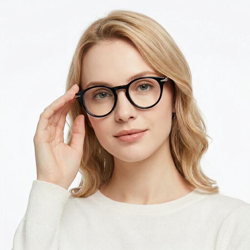 These glasses feature a chic round frame silhouette that is both timeless and fashion-forward, making them a versatile accessory for any wardrobe. The addition of rivet decorations adds a touch of modern flair and personality to the frames, making them stand out from traditional eyewear styles.Whether you're looking to add an edgy touch to your everyday ensemble or want to stand out at a special event, these glasses are the perfect choice. The round frame design is flattering for a variety of face shapes and sizes, making it a versatile option for anyone looking to enhance their style.