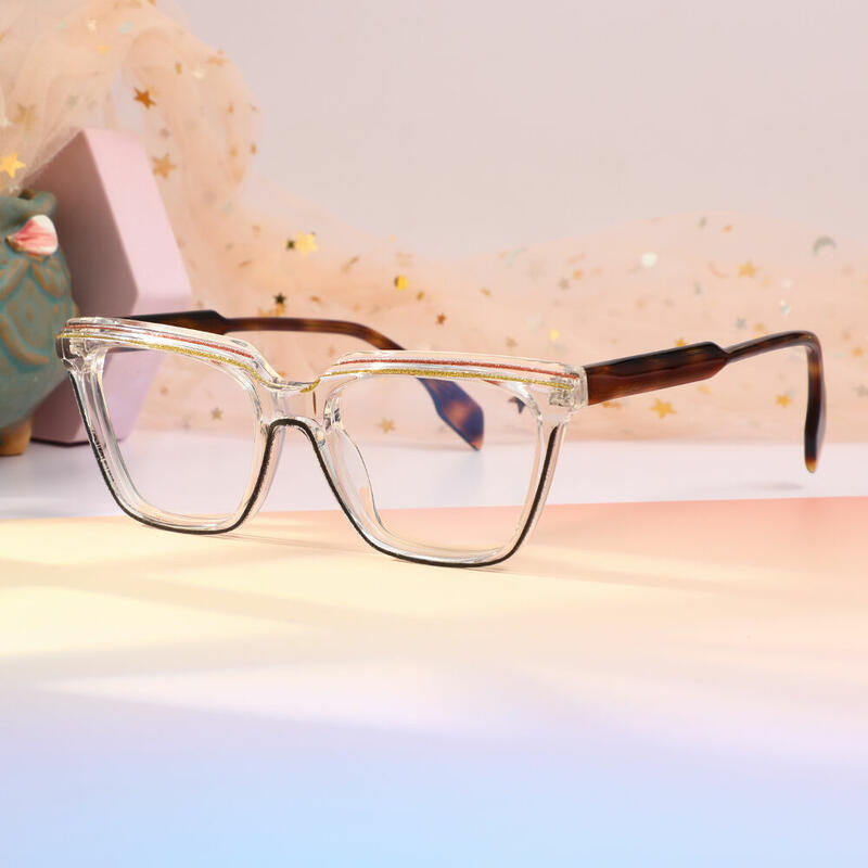 Step into the limelight with Shanell acetate glasses that exude confidence and individuality. These frames feature a touch of sparkling glitter along the edges, making them the perfect accessory for both daytime and evening wear.